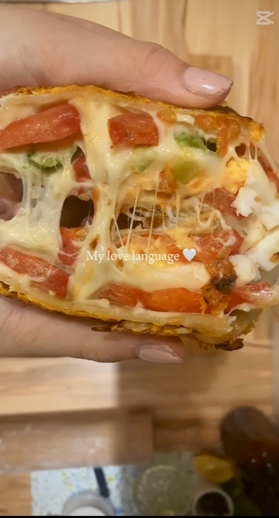 Den Wrapteig zu einem runden dünnen Kreis formen und anschließend in der Pfanne anbraten. Den Burger- Wrap währenddessen mir dem Käse, den Tomaten und dem Salat belegen. Zuletzt mit Gewürzen bestreuen und den Burger- Wrap einmal in der Mitte zusammenklappen.